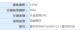 大金中央空调四房两厅套餐系列家用VRV系列,适合86㎡左右空调使用面积,采用室外机RMXS160DV2C+室内机6台。大金家用VRV采用领先世界的VRV尖端技术,在静音、节能、舒适度上表现卓越,以其先进的技术,人性化功能,舒适的制冷享受备受广大消费者所关注和信赖。