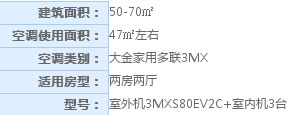 【案例一】:两房两厅70平米——大金家用多联3MX方案